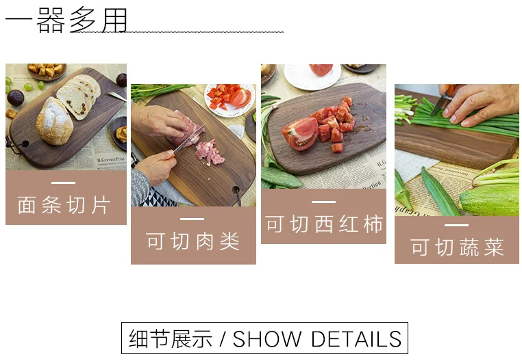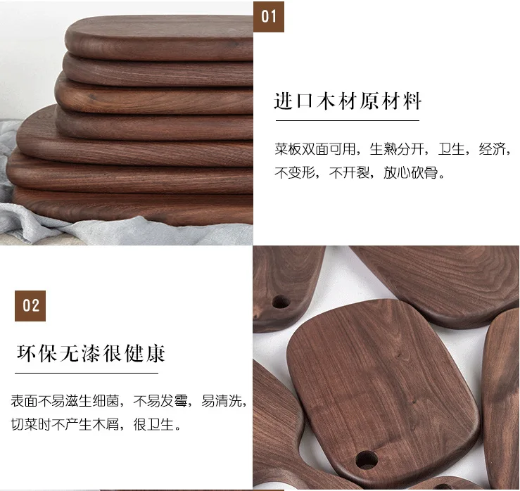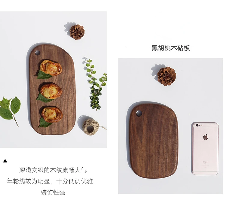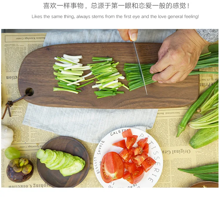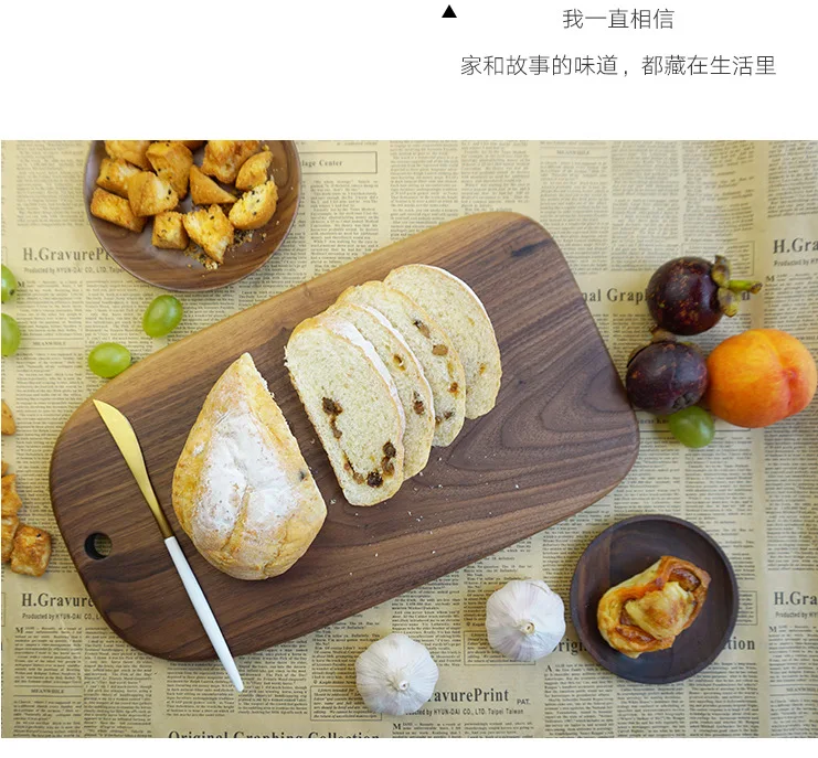 New Chopping Boards Black Walnut Whole Fruit Cutting Board Western Restaurant Solid Wood Bread Board with Handle Cutting Board