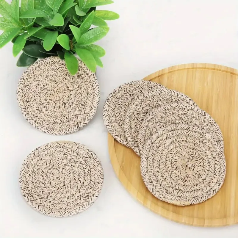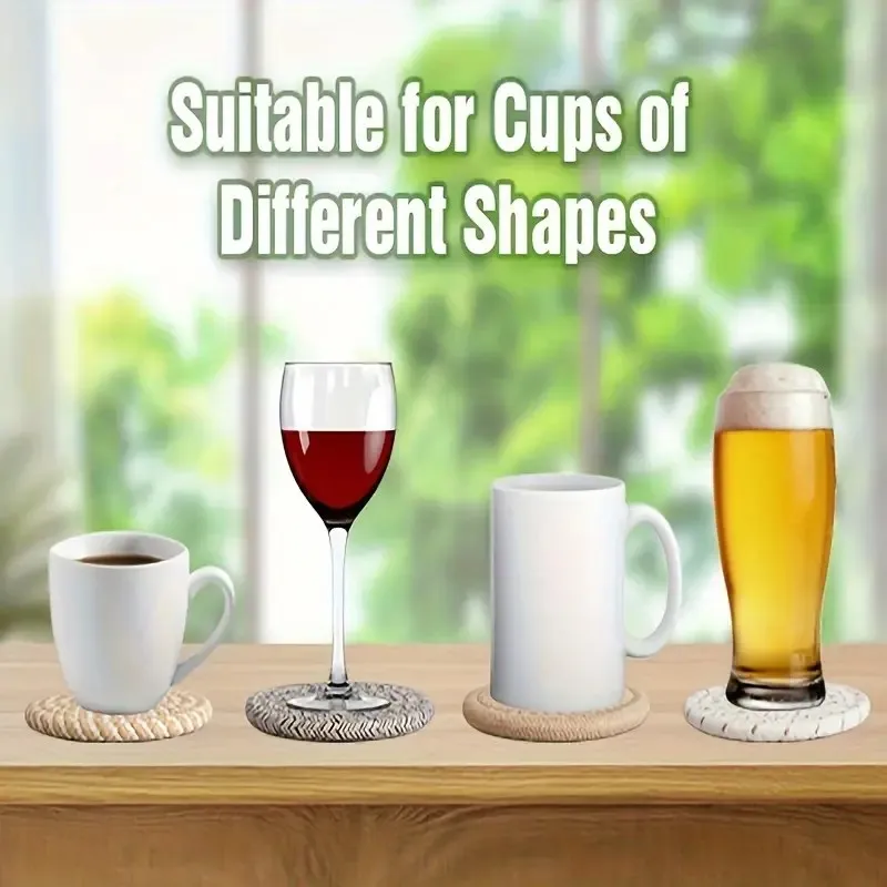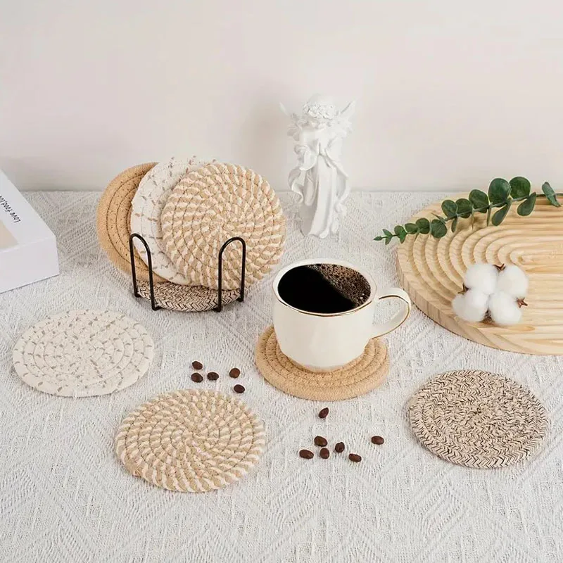 8pcs Woven Coaster Set with Holder High-Temperature Resistant Cup Coasters Absorbent Coasters for Coffee Tea Drinks