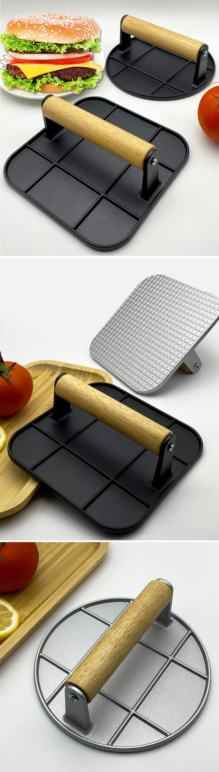 Burger Meat Press Aluminum Alloy Cast Iron Round Press 6.3inch Bacon Grill Press with Wood Handle for Meat Steak Weight